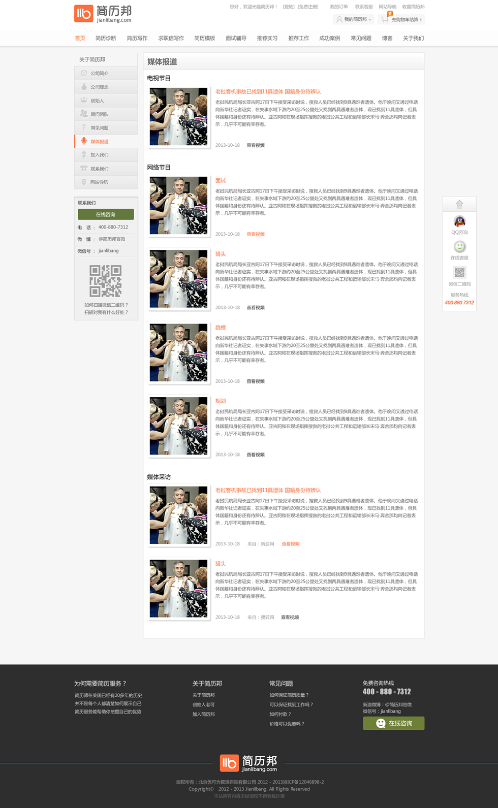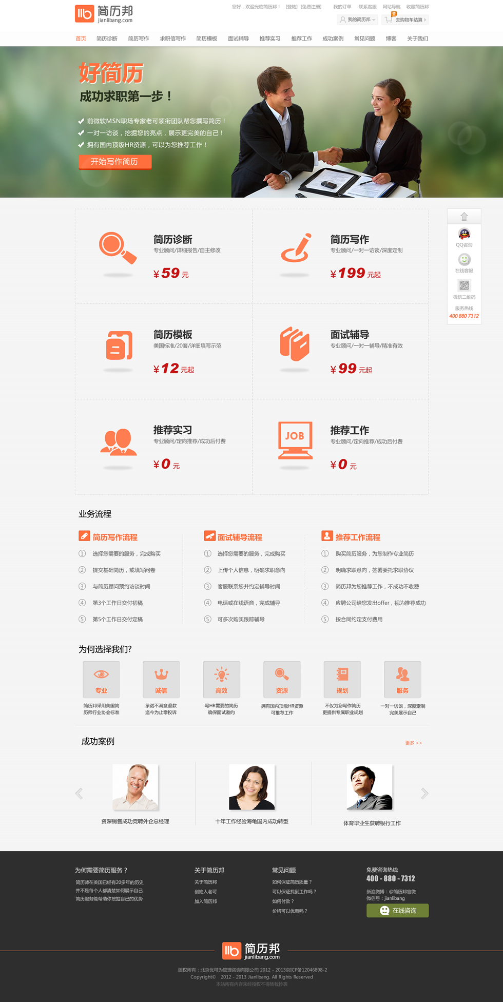 项目介绍:简历邦隶属于北京优可为管理咨询有限公司,专门提供简历诊断、简历写作、求职信写作、模板下载、面试辅导、职业规划等求职辅导服务。