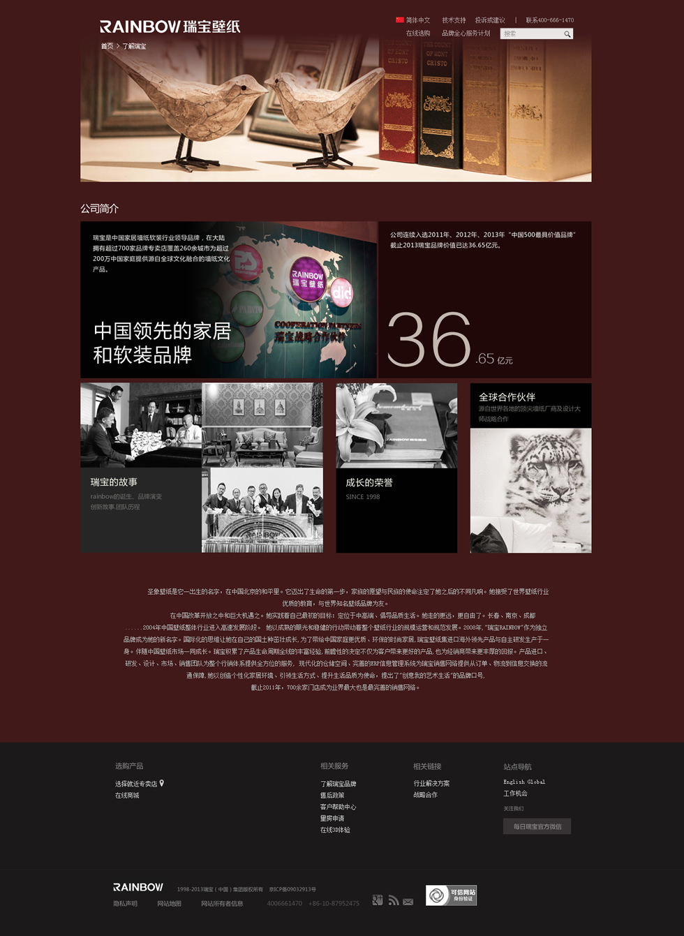项目介绍:瑞宝壁纸,是中国墙纸软装行业领导品牌、中国墙纸行业十大品牌之一,由原圣象集团创始人“王树民”先生于1998年创立。