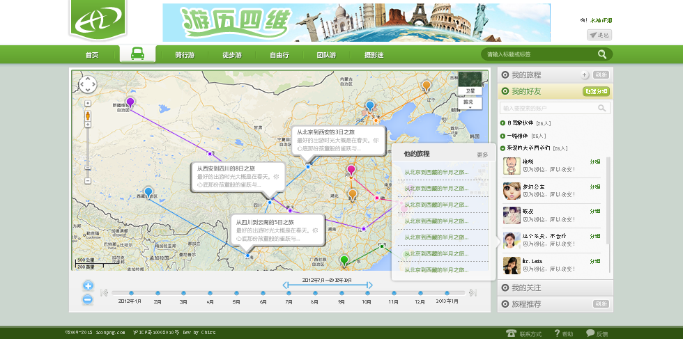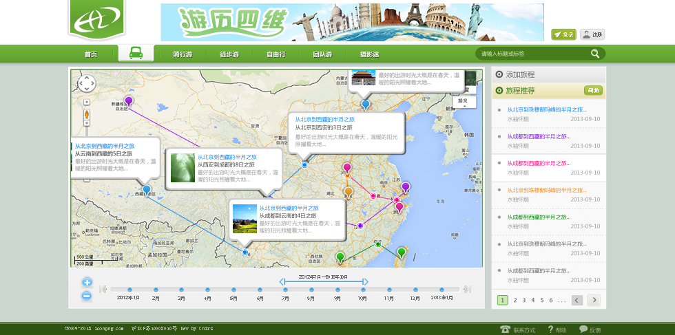 游历四维是一个旅行日记个性记录平台,采用独创的地图时间抽模式,形象的记录旅行的过程。