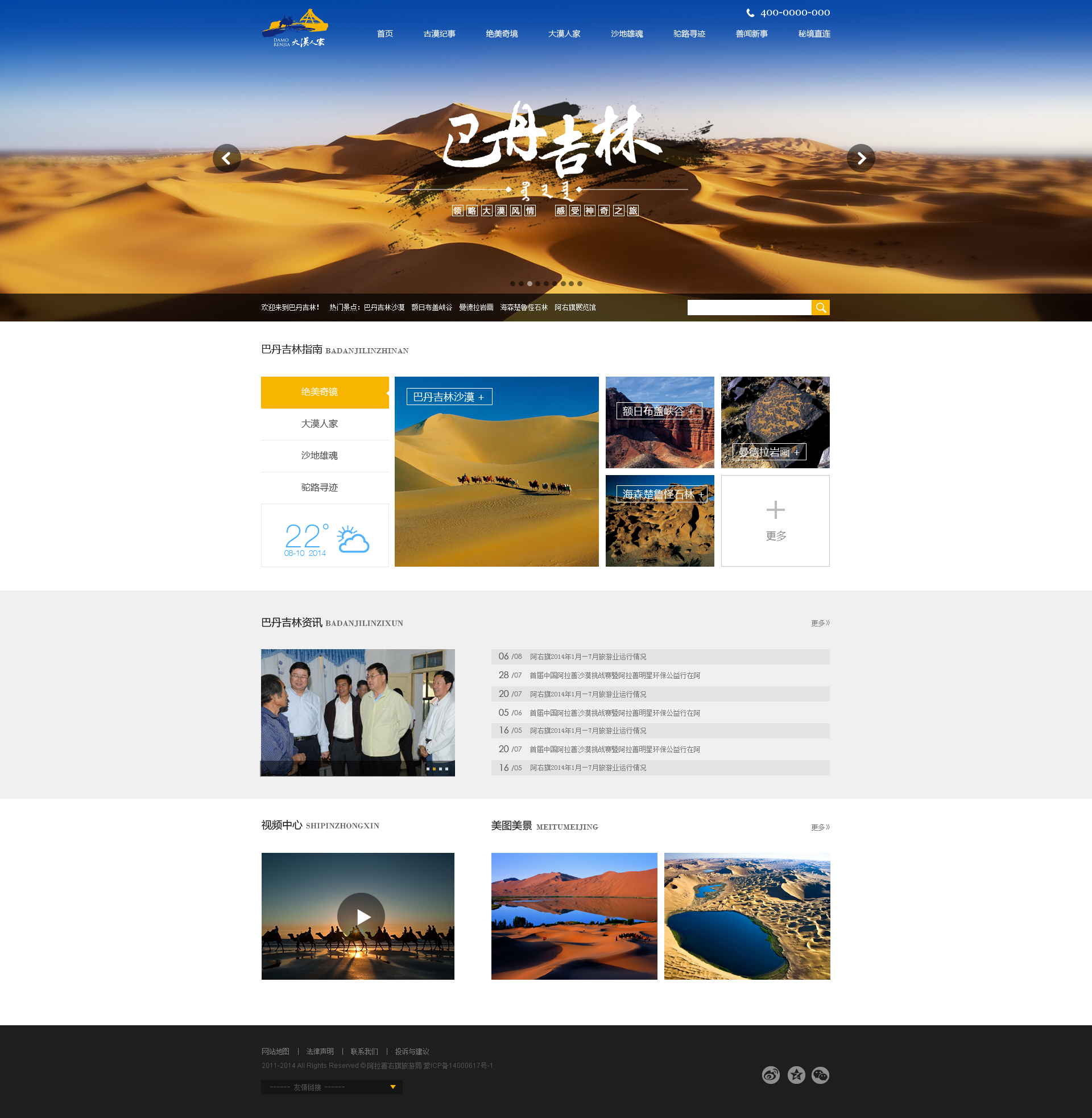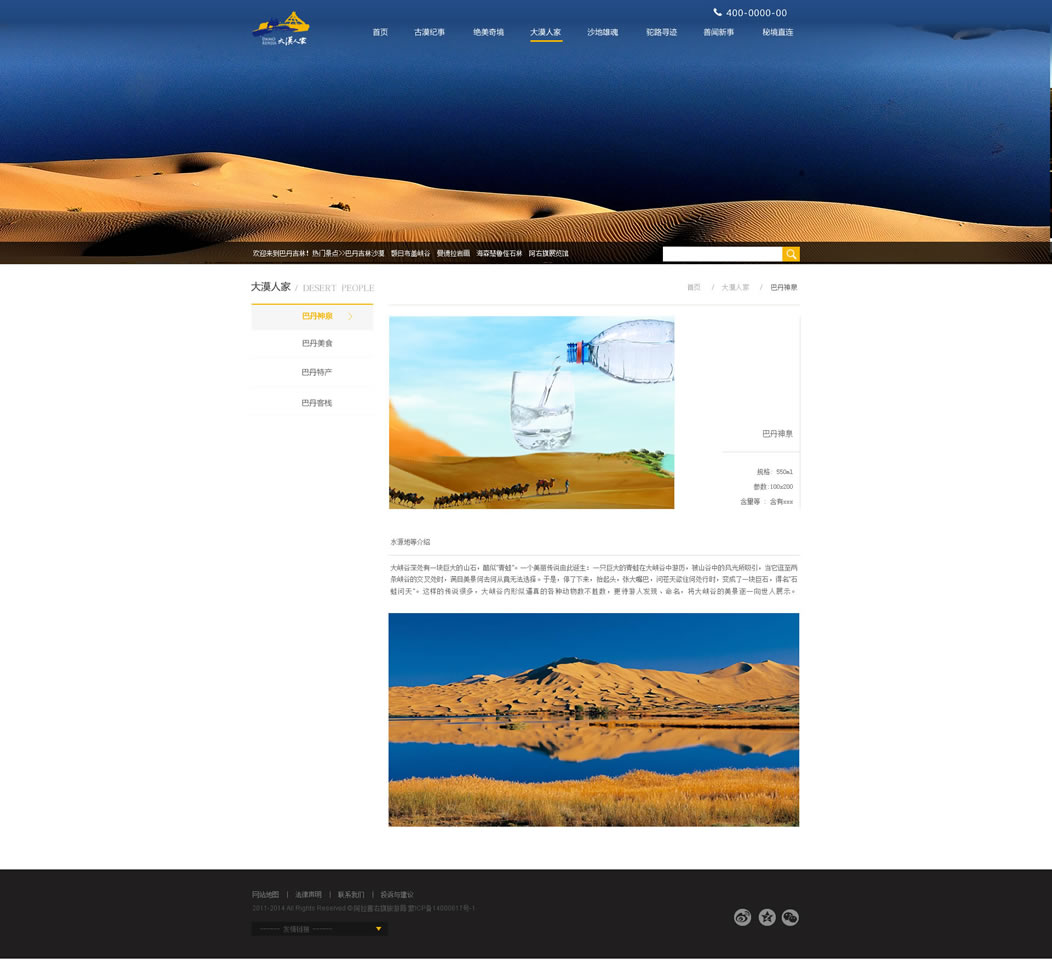 项目介绍:内蒙古巴丹吉林旅游开发有限公司成立于2008年,注册地址为阿拉善右旗额肯呼都格镇原政府,公司现有员工80余人,其中大专学历以上占80%以上基本为旅游学相关专业。公司主要从事巴丹吉林沙