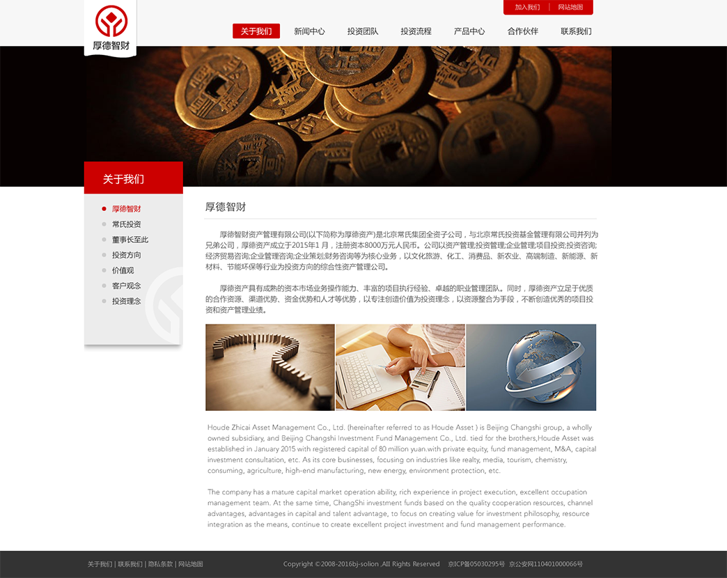 项目介绍:公司以资产管理;投资管理;企业管理;项目投资;投资咨询;经济贸易咨询;企业管理咨询;企业策划;财务咨询等为核心业务,以文化旅游、化工、消费品、新农业、高端制造、新能源、新材料、节能