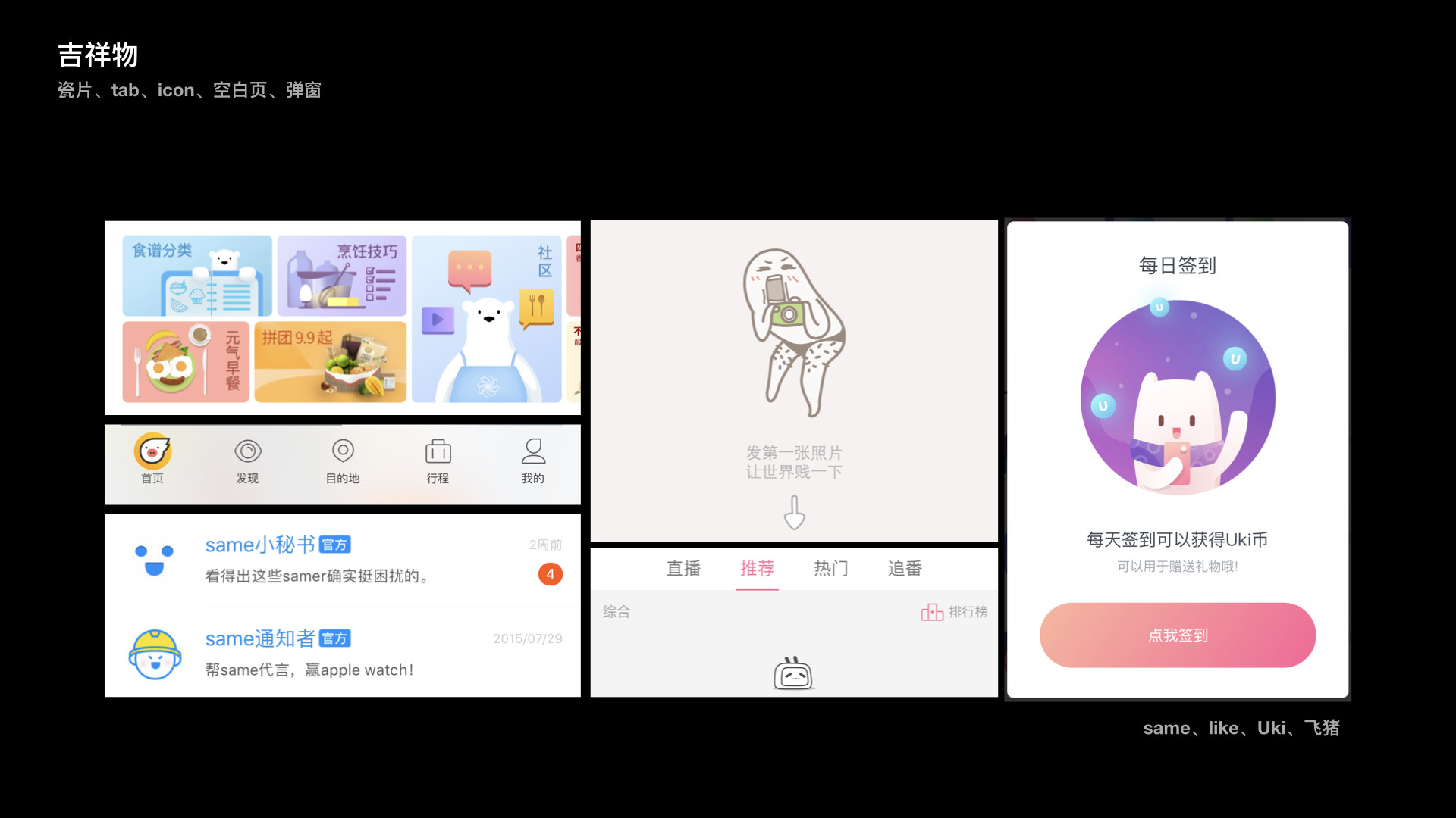 吉祥物在APP设计中可发挥的空间很多: