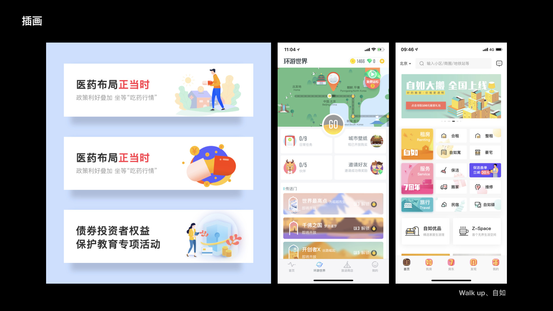 在瓷片、banner中应用插画,需要统一插画的表现形式和风格。
